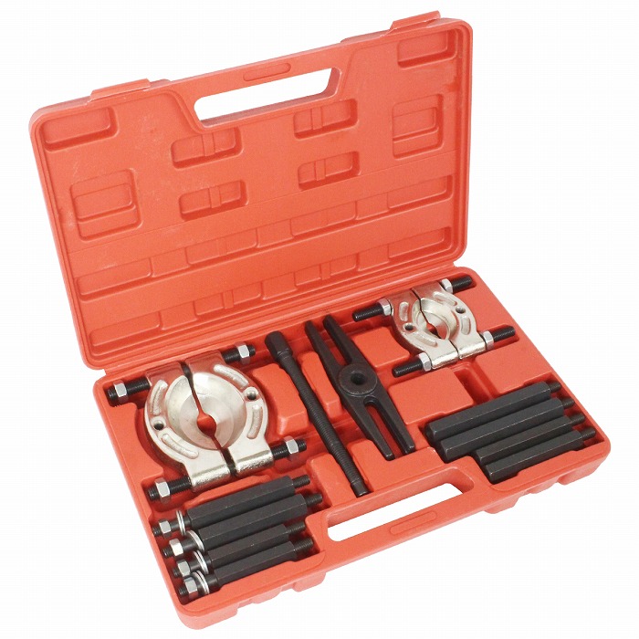 | ベアリングギアを抜き取る際にあると便利な工具です。 パーツを傷つけることなく安全に取り出しができるほか、 狭い箇所でも楽に作業を行うことができます。 ●爪を差し込むスペースがなく、通常のプーラーでは抜きづらい状態の ベアリングやプーリーなどに使用可能です。 ●プラスチック製の収納ボックスに収納されており、整理整頓や持ち運びに便利! |