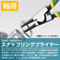 スナップリング(C型止め輪)を着脱するための専用工具です。 自動車部品などの固定によく使われる物で、シャフト(軸)にはめた 部品などが抜け落ちないように、ストッパーとしての役割を果たします。 ●バネ付きなので、手への負担が少なく、連続作業しても疲れにくいです。 ●グリップは2層構造で、滑りにくく握りやすいです。 【穴用・軸用の特徴】 穴用:グリップを握るとスナップリングプライヤーの先端が閉じ、 スナップリングが閉じます。 軸用:グリップを握るとスナップリングプライヤーの先端が開き、 スナップリングが広がります。 |