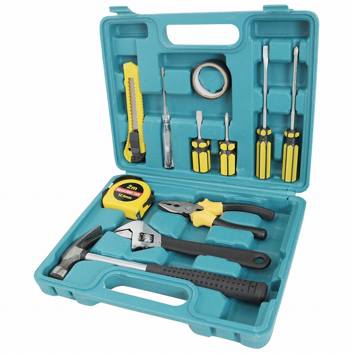 | 備えて安心、充実の11点の工具セットです。 軽量・コンパクトなのでご家庭・事務所の常備工具として便利で、 家具の組み立てや住まいのメンテナンスに最適です。 ●工具はバナジウムやクロム鋼でできているので、耐久性・耐食性に優れています。 ●プラスチック製の収納ボックスに収納されており、整理整頓や持ち運びに便利です。 |