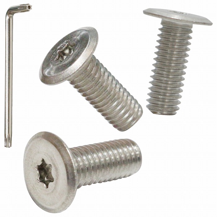 | ◆サイズ:M6 × 15mm ◆仕様:いたずら防止ネジ ◆個数:3本セット ◆付属品:トルクスレンチ付き |