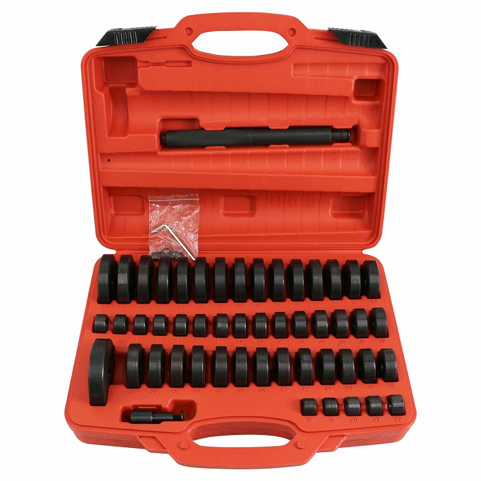 | ・油圧プレス使用時のベアリングの圧入、オイルシールの圧入、 ブッシュの圧入に使えるアタッチメントセットです。 ・全49サイズのフルセット!外径は18mmから65mmまで1mm刻み&74mmです。 ・ケース付きで持ち運びにも便利!はめ込み式なのでツールが散らばることなく収納できます。 ・異なるサイズのアタッチメントを二個同時にセットすることができ、 シャフト同士でつなぐことも可能です。 |