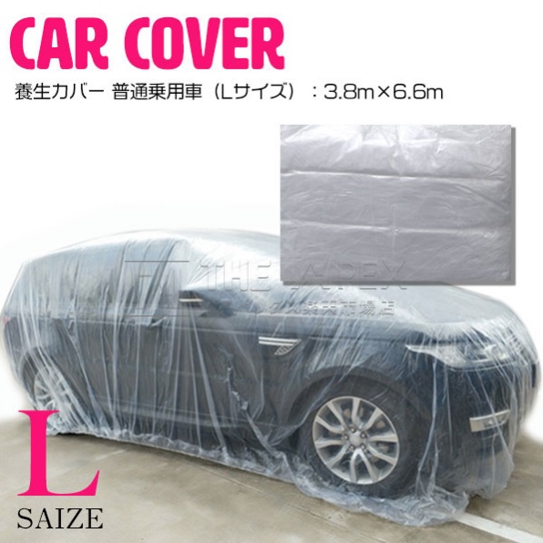 | 自動車の塗装・作業現場での一時的な養生材としてご使用いただけます。 塗装、作業時の汚れ、雨天時の汚泥、ホコリなどから守る、自動車カバーです。 |
