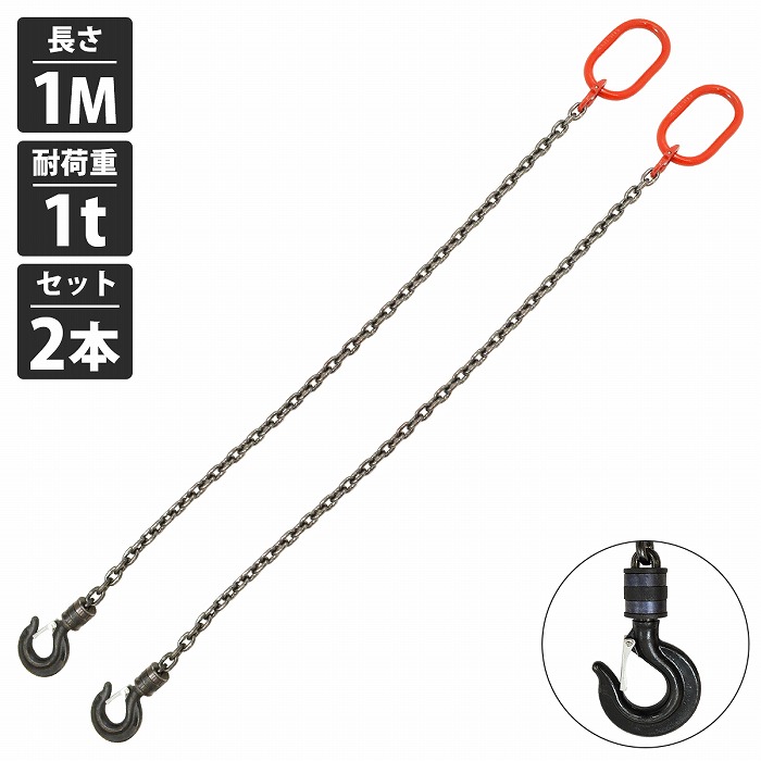 玉掛け・運搬吊り・荷役吊りなどに最適なチェーンストリングです。 フックは360度回転! 開口寸法も広く、玉掛作業が楽に行えます。 輸送、土木工事、建築工事、吊り上げ作業など様々な場面で大活躍します。 |