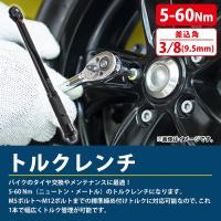 | バイクのタイヤ交換やメンテナンスに最適! ネジの締め付けトルクを測ったり、ボルトやナット等の部品を ねじ規定のトルク値で締め付けたりするのに使われる作業用・測定用工具です。 5-60 Nm(ニュートン・メートル)のトルクレンチになります。 M5ボルト〜M12ボルトまでの標準締め付けトルクに対応可能なので、 これ1本で幅広くトルク管理が可能です。 ◆差込角3/8(9.5mm)の耐久性のある四角ヘッドで、ソケットを滑らず固定します。 ◆つまみ部分で回転方向をワンタッチで自在に切り替えが可能◎レンチの持ち替えが不要です。 ◆時計回りでロックでき、反時計回りでロック解除できます。 ◆読みやすい目盛りでトルク値を正確に設定できます。 |