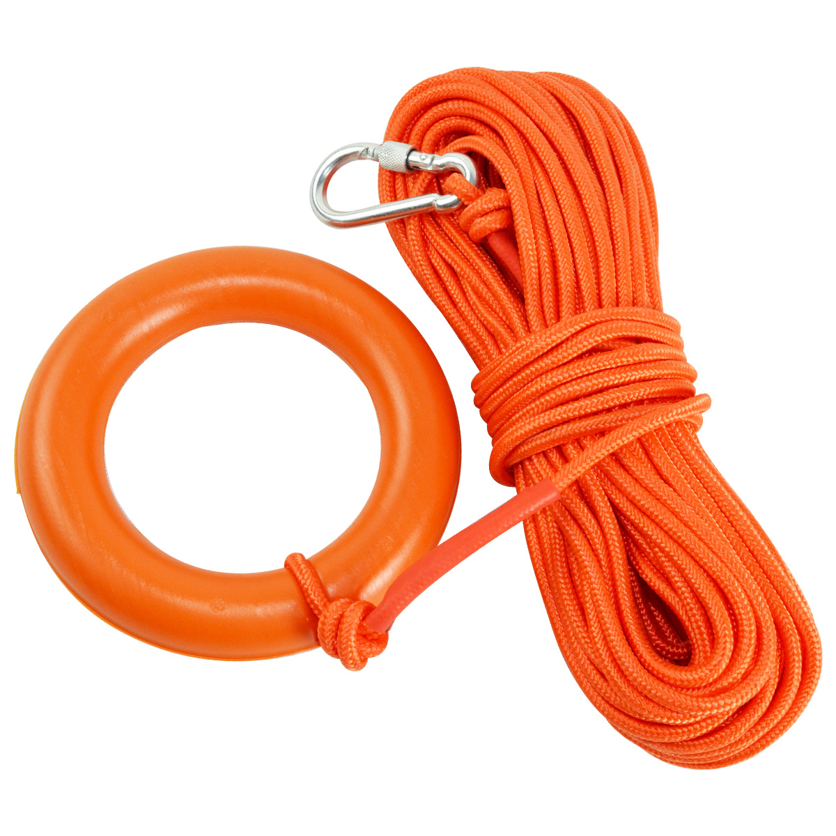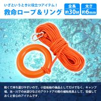 水上での必需品! 救命リング・カラビナ付き 救命ロープです。 アウトドア、池・川での水遊びなど幅広く活用できます。 また、災害や水難事故でのレスキュー活動でも使用されている救命具です。 万が一に備え、ぜひ装備しておきたいアイテムです。 ●ロープはポリエチレン製なので、吸水性が低く水に浮きます。 ●リングはドーナツ型で持ちやすく、適度な重みで投げやすいです。 ●視認性の高いオレンジ色で水面でも目立ちます。 ●軽量なので、持ち運びも楽々♪ |