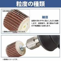 | 電動ドリルやリューターなどに取り付けて使用します。 手作業では難しいパイプの内側やディスクグラインダーが入らない箇所など細部の研磨に最適です。 ●細部の作業に ●曲面の研削・研磨に 【使用用途】 金属の内側・表面の研磨・錆び落とし、塗装はがし、木材、プラスチック、樹脂、珪藻土 など ご使用いただく前に、フラップホイールのぬるま湯に2、3分程度浸して水分を浸透させておくと、 加工や研磨中の削りくずが散らかりにくく、フラットホイール自体も長持ちするためおすすめです。 使用する際は、正しい回転方向かどうか必ず確認をしてから作業を行ってください。 |
