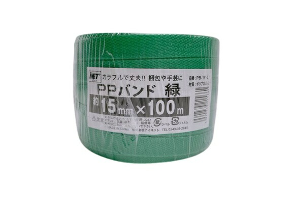 アイネット PPバンド PB-151-5 緑 幅約15mmX100m