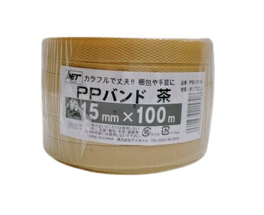 アイネット PPバンド PB-151-9 茶 幅約15mmX100m