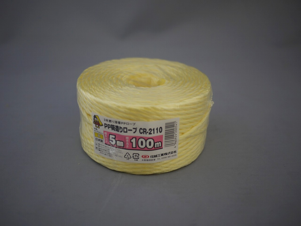 信越工業 PP荷造りロープ 5mmX100m 黄 CR-2110
