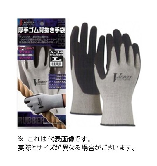 おたふく手袋 厚手ゴム背抜き手袋 グレー A−34 M