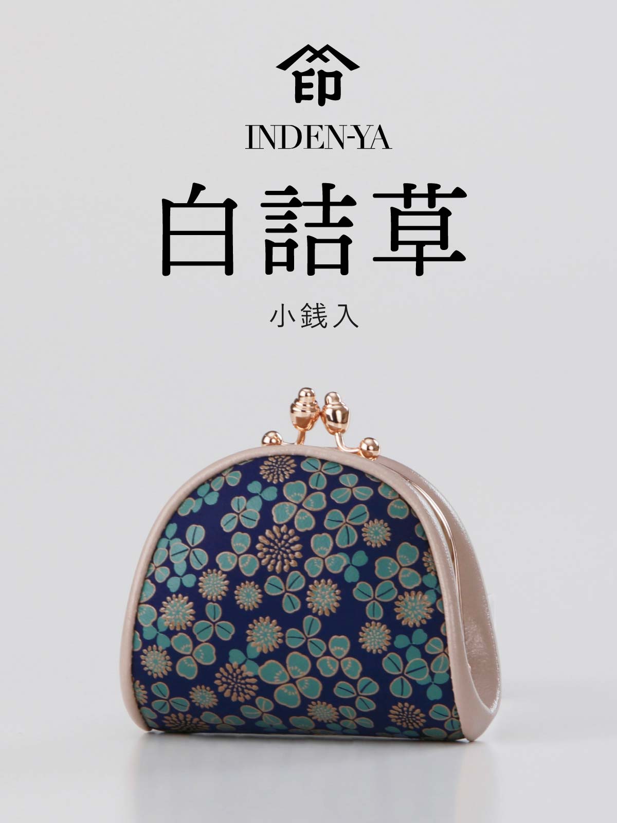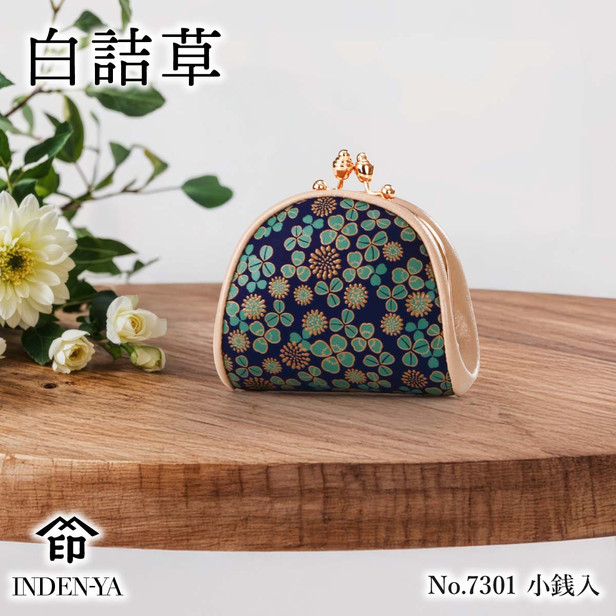 印伝 7301 白詰草 シロツメクサ がま口小銭入れ INDEN-YA 甲州印伝