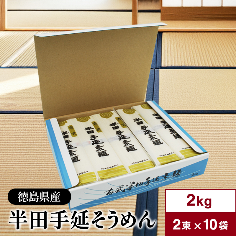 阿波半田手のべ 本格 半田そうめん 2kg (100g×2束×10袋) 徳島県産 太麺仕上げ 強いコシとなめらかな喉越し 爆買