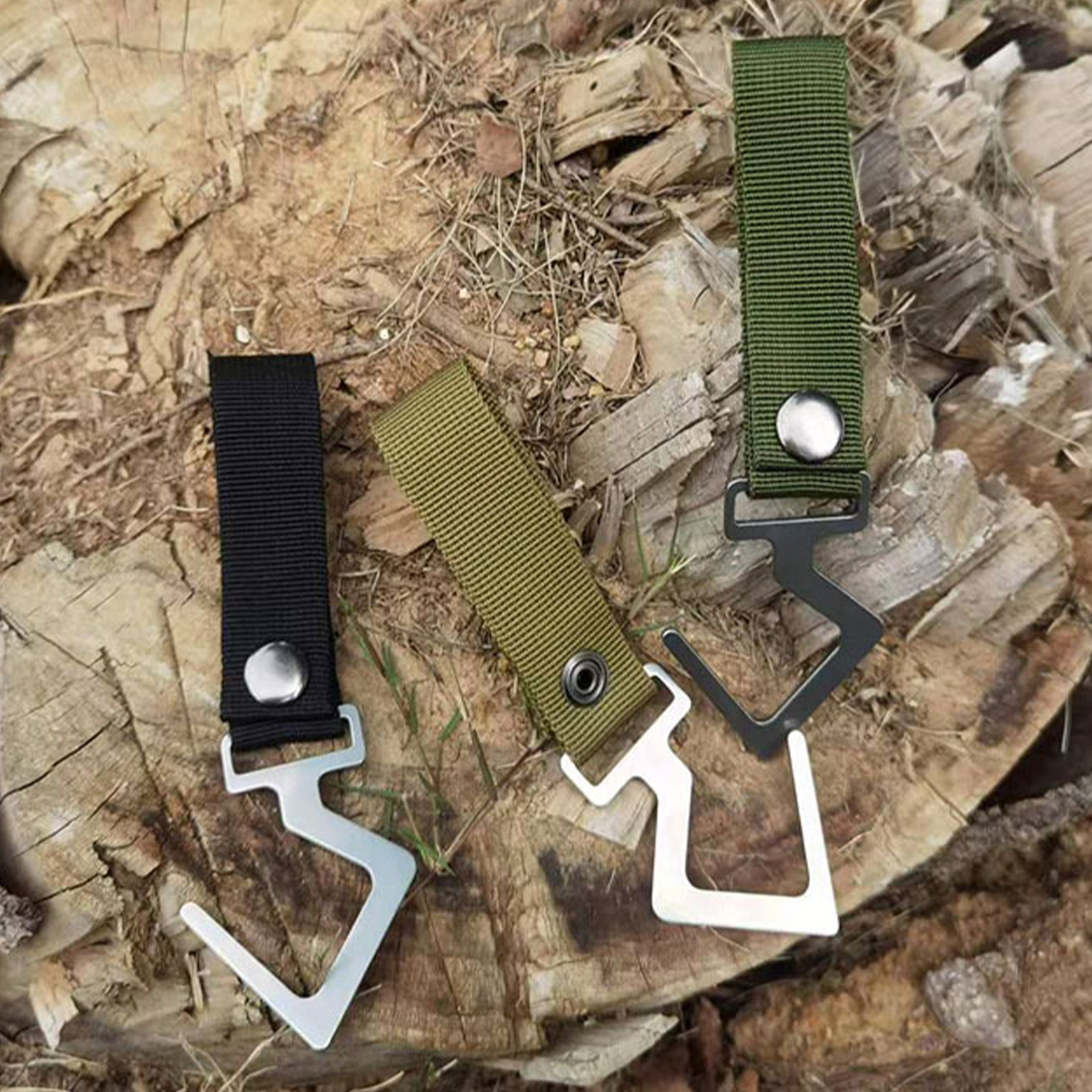 S字フックが、フライパン乾燥や服の吊り下げなど、さまざまなキャンプタスクで役立ちます。丈夫なPPベルトがフックを安全に保持し、使い勝手を向上させます。