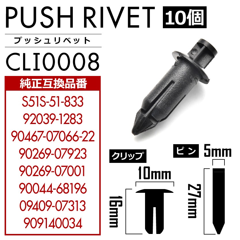 マツダ カワサキ トヨタ ヤマハ ダイハツ スズキ スバル プッシュリベット 10個セット 純正互換品 90467-07066-22 フロントドア リアドア クリップ