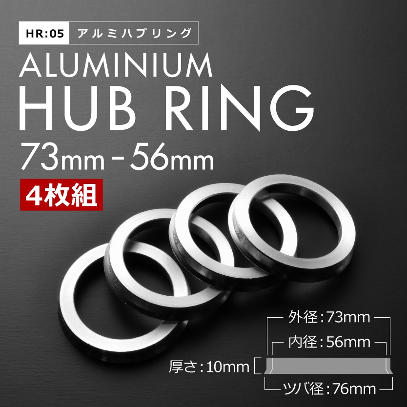 ツバ付き アルミ ハブリング 73 56 外径/内径 73mm→ 56.1 mm 4枚セット ホンダ スバル HR05