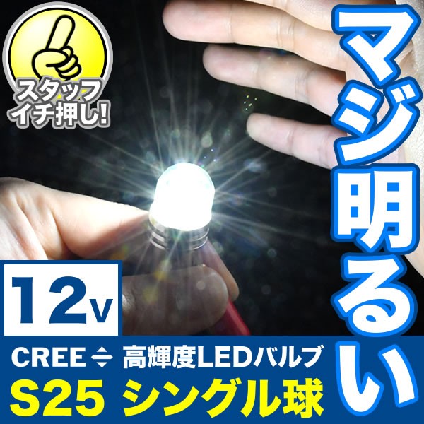 マジ明るい 12V 500ルーメン CREE S25 シングル LED球 無極性 ホワイト BA15s 1156 平行ピン 180度