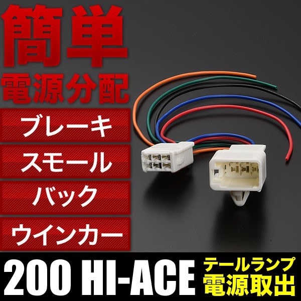 200系 ハイエース テールランプ 電源取り出しハーネス 片側1本 ウインカー バック スモール ブレーキ 配線