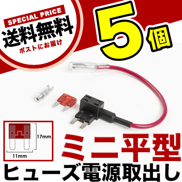 ミニ平型 ヒューズ電源取り出し配線 5個 12V24V兼用 10A ヒューズ付き 品番FS2