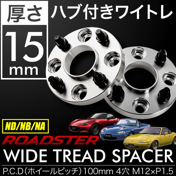 ND NB NA ロードスター ハブ付きワイドトレッドスペーサー+15mm ワイトレ 2枚組 PCD100 ハブ径54mm 4穴 W30