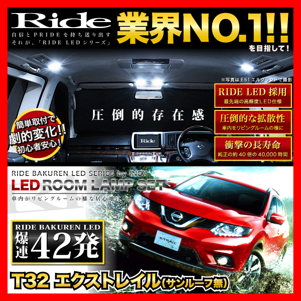エクストレイル(サンルーフ無し車) ルームランプ LED RIDE 42発 6点 T32 [H25.12-R4.7]