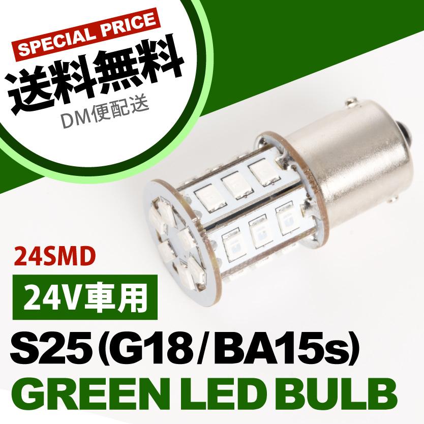 24V 24連SMD S25シングル カラーLED グリーン 緑 G18 BA15s トラック ダンプ 大型車用 路肩灯 サイドマーカー 回転灯