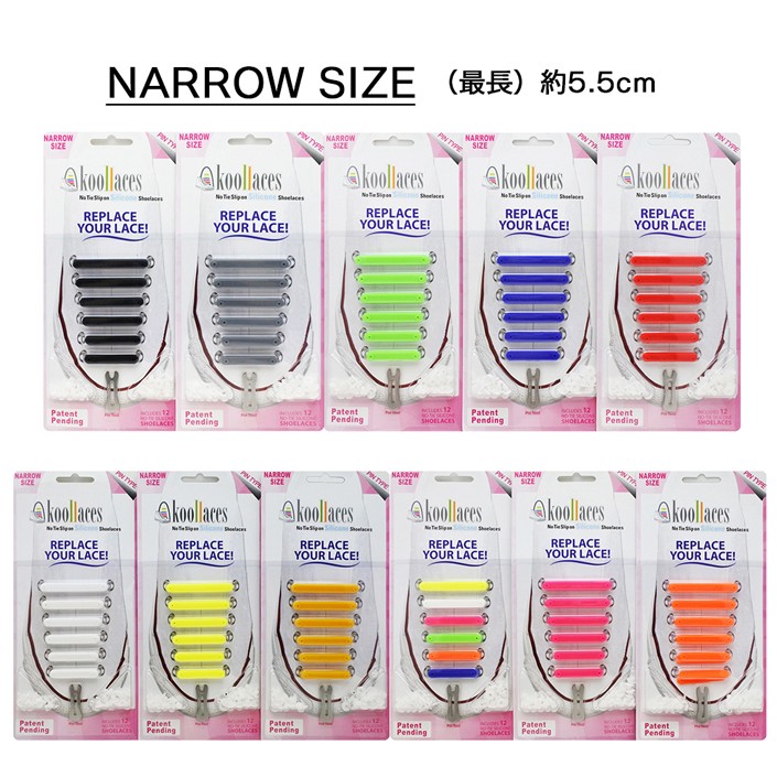 コンバース等の細身のスニーカーにはメンズサイズでもNarrow幅をおススメします。1箱につき12本、右足・左足合わせて1足分入っておりますのでご注意ください。とにかく靴の脱ぎ履きが楽ちんです☆楽をしたい方にも、靴をオシャレに彩りたい方にもおススメです♪