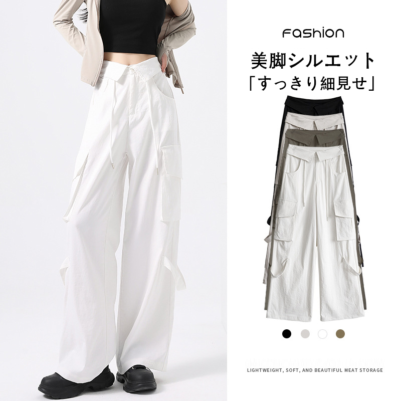 カーゴパンツ レディース ミリタリー ワイドパンツ ウエストゴム ヒップホップ ダンス ファッション カジュアル おしゃれ ゆったり 美シルエット 夏