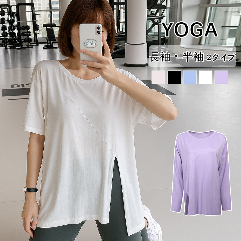 ヨガウェア レディース トップス 半袖 長袖 吸汗速乾 薄手 ゆったり 体型カバー 細見え 夏用
