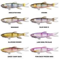 ストッピングの瞬間に発生する絶妙な揺らめき、リトリーブスピードを上げるたび引き起こされるパニックエスケープなど、単純動作を加えるだけで喰わせてしまう驚異の被捕食率が、HASU RAVERの凄いところ。MAGHOLD(PAT.P)システムにより、フックはボディに磁着され、フックの存在をカモフラージュ。タフなターゲットに対する違和感をなくし、フレキシブルでナチュラルなアクションを披露。リザーバーのハスパターンをはじめ、落ち鮎、ウグイなど大型のベイトパターンにアジャストするHASU RAVERは、従来スイムベイトの誘いを見切ったターゲットに異次元の釣獲力をいかんなく発揮します。