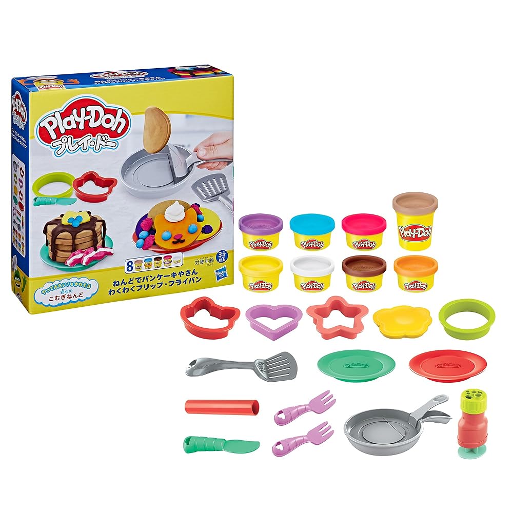 | 主な仕様 | 【つくって、わくわくごっこ遊び】さぁ起きて、プレイ・ドーパンケーキの時間だよ!このプレイセットは、ねんどを使ってフライパンでパンケーキが作れます。【自分だけのプレイ・ドーパンケーキを作ろう!】シェフになりきって、フライパンの持ち手を押して、パンケーキをひっくり返してみましょう!【14個のキッチンアクセサリー】丸型や猫型などいろんな形が作れるパンケーキの型が4個、シロップ用の絞り出し器、お皿とフォークもついています。【ねんど8色入り】セットには、ピンク、青、黄、白、紫、オレンジ、茶、おうど色のこむぎねんどが付属しています。【発想力や想像力を育む】プレイ・ドーのフードプレイセットは3才以上のおままごとが大好きなお子様がパンケーキ屋さんごっこをしながら指先を動かすスキル、想像してモノを作る力を養います。 |