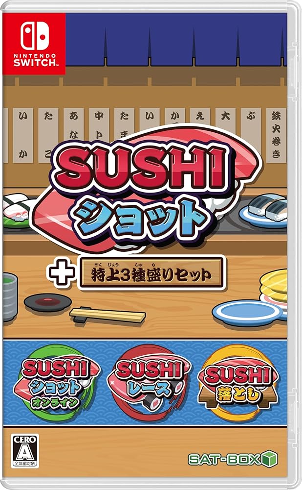 | 主な仕様 | 人気のSUSHIシリーズ、4本が1つのパッケージソフトになって登場!ダウンロードで人気のSUSHIシリーズの4本が1つのパッケージタイトルになりました。ひとりでもみんなでも楽しむことができ、わかりやすい内容でどなたでもすぐにプレイすることができます!『SUSHIショット』寿司を狙ってショット!同じ寿司をぶつけて、どんどん大きな寿司をつくろう!同じ寿司を二つ合わせると、寿司の種類が変わっていくぞ!寿司がレーンまで溢れないように、同じ寿司をぶつけ合おう!目指せ!最高記録!『SUSHIショット オンライン』寿司を狙ってショット!世界中のプレイヤーとオンラインで対戦しよう!大きな寿司をつくって相手におじゃまバランを送ろう!おじゃまバランは近くの寿司をくっつけると消せるぞ!『SUSHIレース』みんな大好きなお寿司でレース!?寿司を操作してコースを駆け抜けろ!だれでも簡単に楽しめるレースゲームが登場!性能の違う魅力的な寿司のマシンたち!ドリフトで華麗にカーブを曲がろう!バラン、醤油ミサイルなどのアイテムを駆使してライバルを突き放そう!『SUSHI落とし』寿司を落としてつみ重ねよう!より多く、より高くつんで目指せ最高記録!寿司下駄の上に寿司を落とそう!カウンターに落とさないように、寿司をつみ重ねよう!対戦・協力で盛り上がろう! |