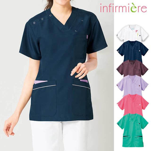 V-CAT 多機能ポケット&配色パイピングスクラブ(男女兼用)_TB