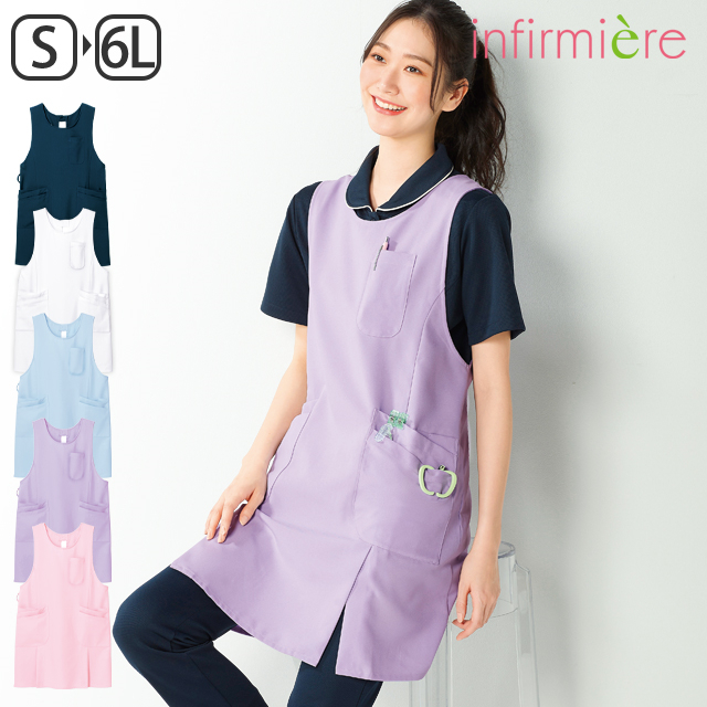 保育士 エプロン ナース ナースエプロン 看護師 保育士 介護士 歯科衛生士 医療 予防衣 無地 アンファミエ ダブルスリット多機能ポケットエプロン(男女兼用)
