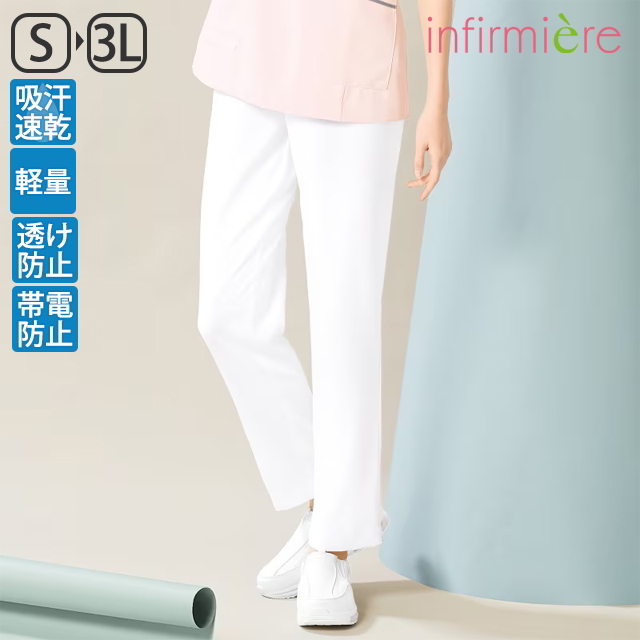 パンツ ズボン ナース 医療 看護 介護 白衣 ナースウェア 介護士 歯科衛生士 クリニック アンファミエ シルキードライギャバ 裾すっきりウエスト総ゴムパンツ