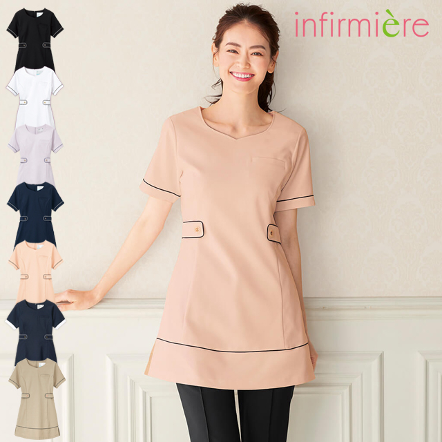 ナース服 白衣 レディース ナースウェア エステ制服 エステ ユニフォーム 看護 アンファミエ ビューティウェア 防汚機能配色パイピングチュニック