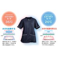 温度が高い時には、汗を素早く拡散・蒸発させ気化熱で熱を奪って体感温度を下げる。温度が下がると、汗の蒸発を抑え体感温度の度の下がりすぎを防いで快適な着心地をキープ。