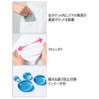 着心地なめらかでシワになりにくく、ストレッチ性に優れた素材。インナーは水を弾く撥水機能付き。汚れが表につきにくく下着の透け防止対策にも。