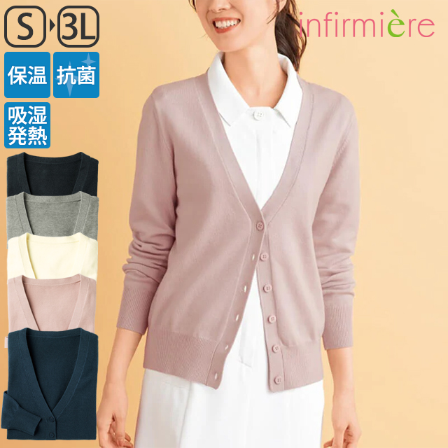 ナースカーディガン 医療 白衣 看護 アンファミエ あったか持続吸湿発熱ソフトタッチカーディガン(レギュラー丈)_TB