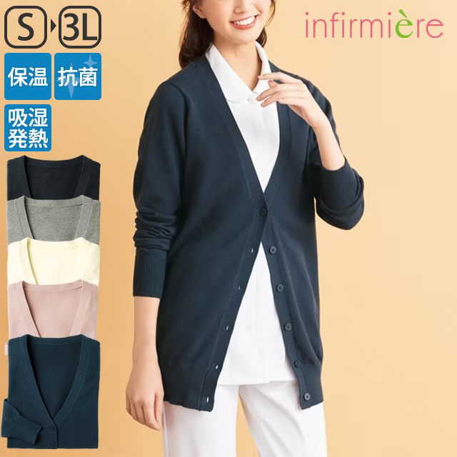 ナースカーディガン 冬用 医療 白衣 看護 アンファミエ あったか持続吸湿発熱ソフトタッチカーディガン(ロング丈)_TB