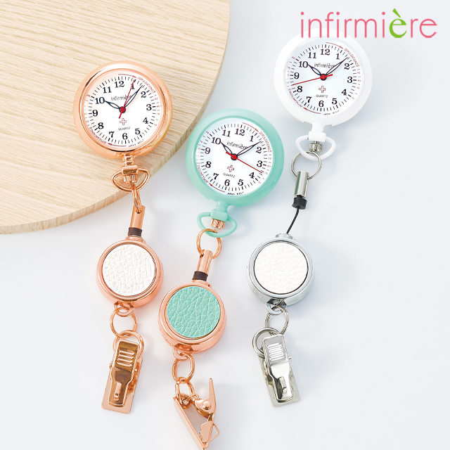 ナースウォッチ 懐中時計 看護師 時計 伸びる クリップ ナース ナースグッズ 医療 アンファミエ リールクリップ式蓄光針ナースウォッチ