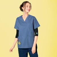 チラ見えする袖のワンポイントプリントが可愛いスクラブインナー
