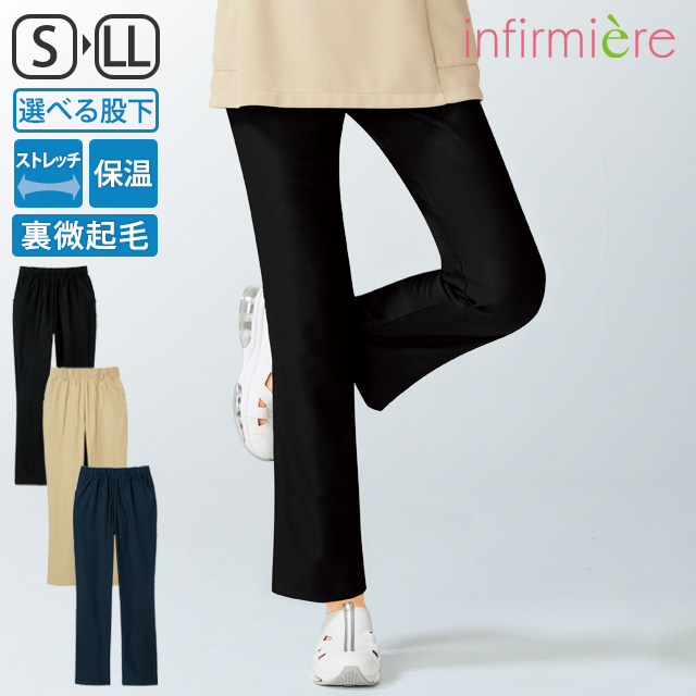 ナース服 白衣 ズボン ナースウェア アンファミエ 裏微起毛ラク伸び美脚ストレッチパンツ