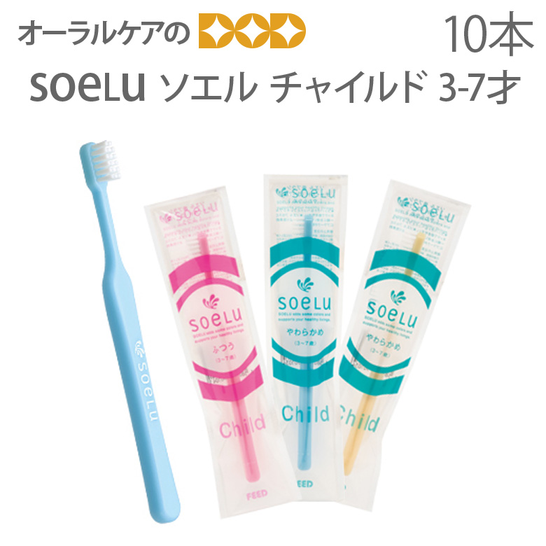 1/11限定!5%OFFクーポン!歯ブラシ 子供 ソエル soelu チャイルド こども用 3から7歳用 10本セット メール便可 4セット40本まで 即発送