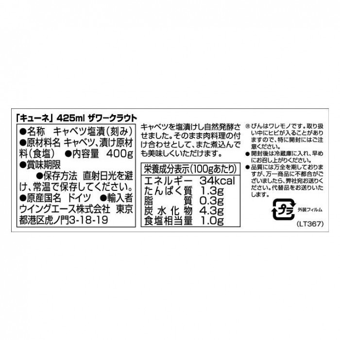 キューネ ザワークラウト 425ml 6個セット 053015