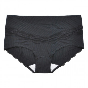 身生地は、ストレッチ性のあるベア天竺素材なので、産前産後と長く使え、産後も上下コーデを楽しめます。ウエストとヒップはラグジュアリーなレースを贅沢にあしらいました。ヒップレースは直接肌に触れにくい生地の上に重ねる仕立てに。見た目も機能も充実なアイテムです。