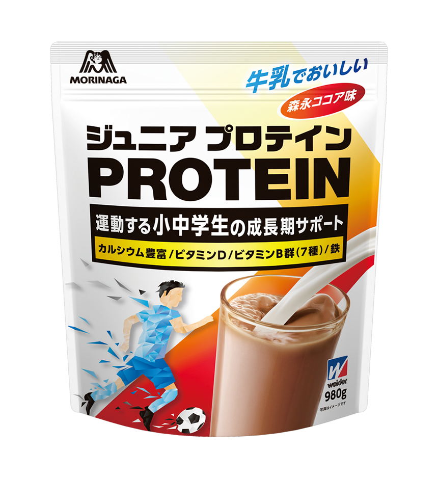 「ウイダー ジュニアプロテイン」は、スポーツ・勉強をがんばる成長期のお子さまの栄養を支える補助食品です。