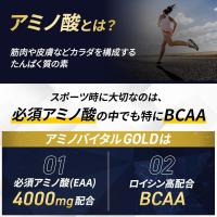 「アミノバイタルR」GOLDは、ロイシン高配合BCAAを中心とする9種類の必須アミノ酸4000mgが配合されたスポーツサプリメントです。