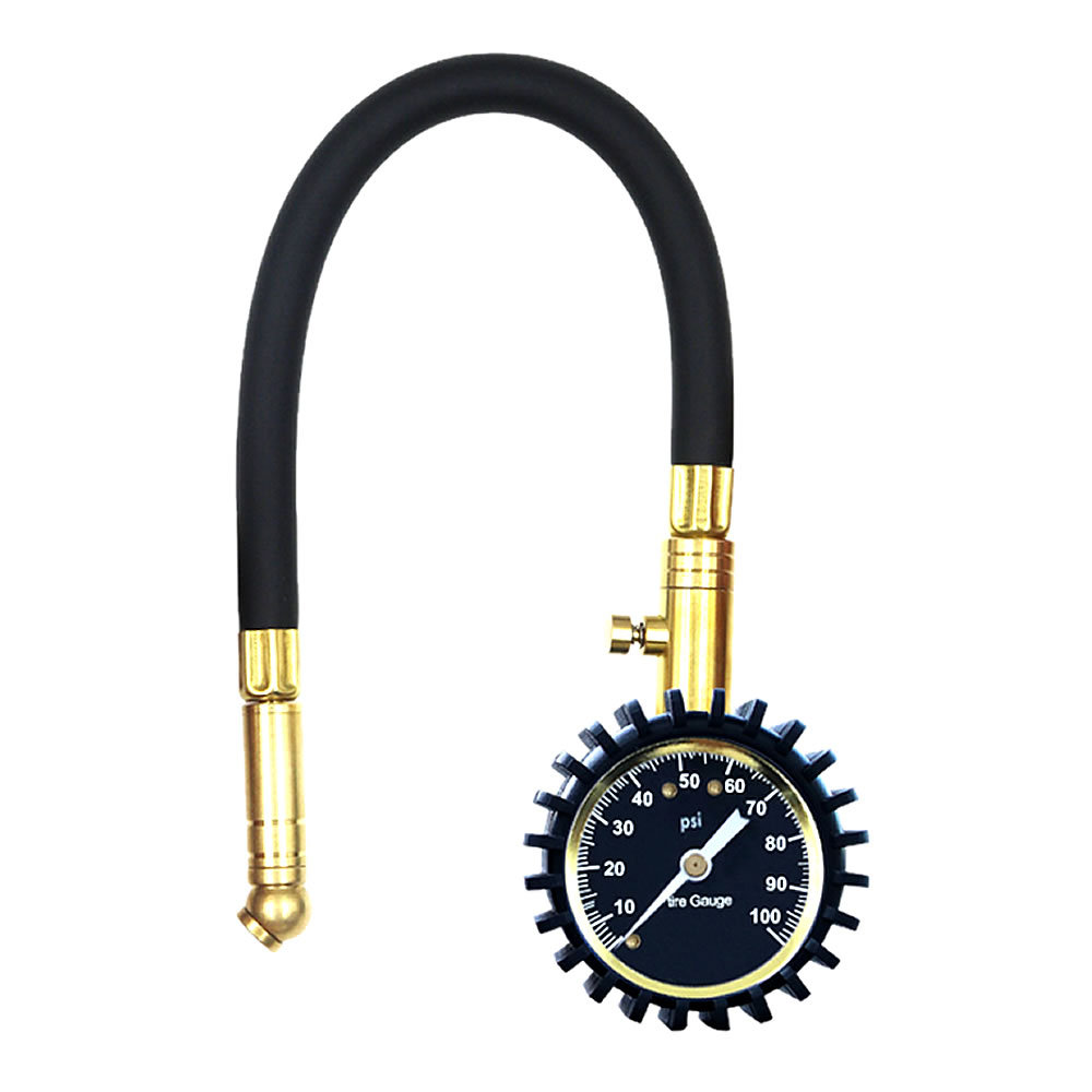 エアゲージ ロング タイヤ 空気圧 エア抜き ラバージャケット付 車 汎用 メンテナンス 高速道路 カー用品 ゴールド