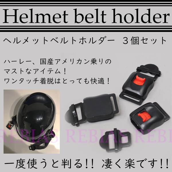 ワンタッチ ヘルメット ベルトホルダー 3個セット ロック バイク ハーレー 半ヘル