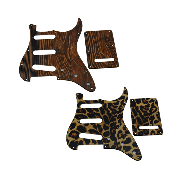 ヒョウ柄 ギター SSS ピックガード バックパネル セット 木目 fender ストラト